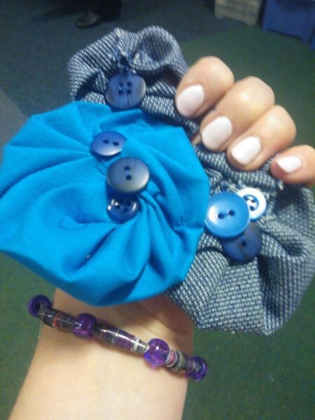 We used old materials to sew flowers and we used magazines to make beads for necklaces Or bracelets as well using recycled pots and magazines for pen pots.