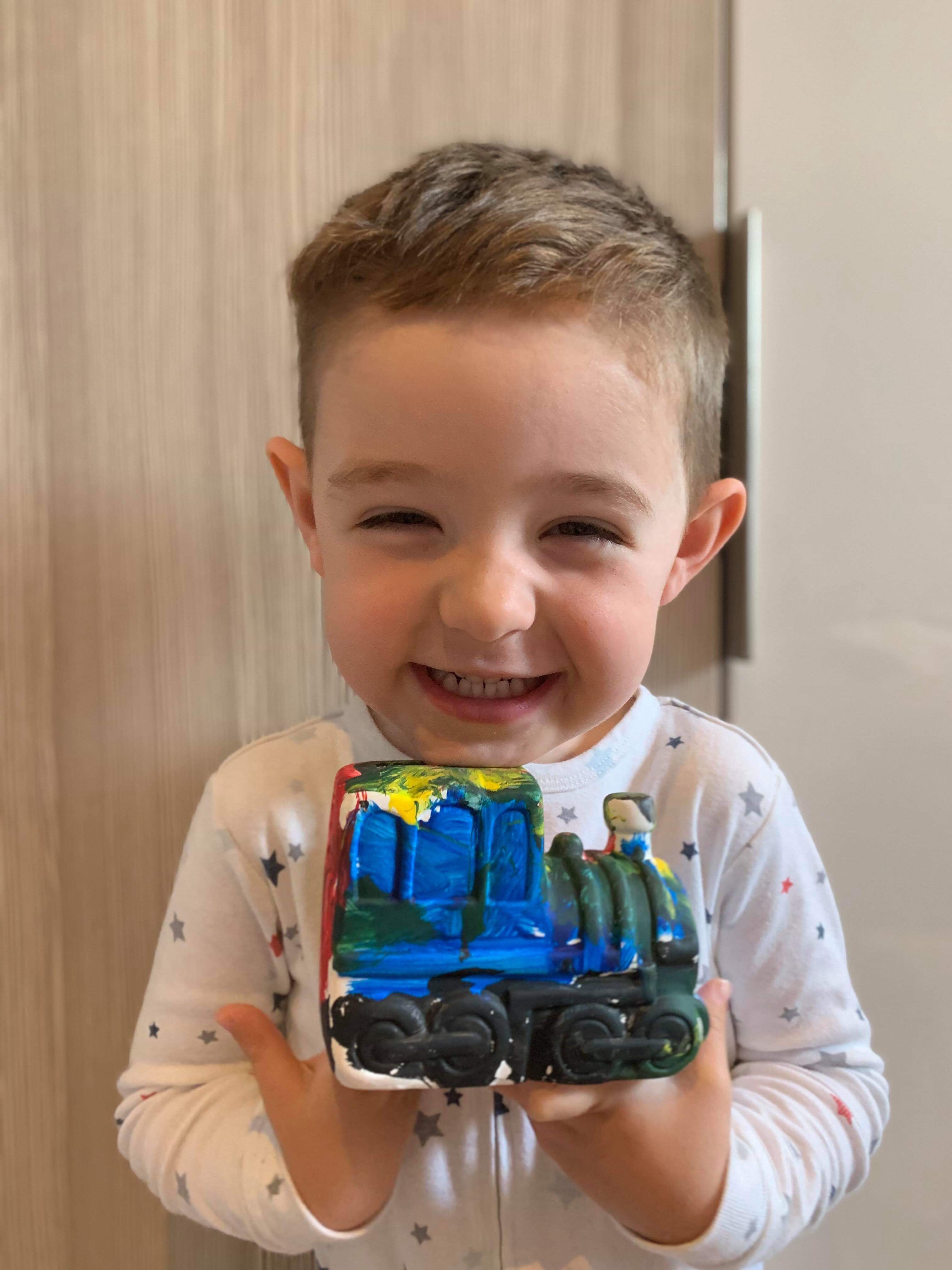 Max Chadwick, Haslingden (aged 22 months) taking a train