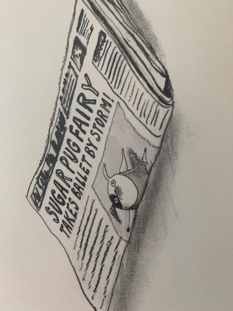 A lovely activity for our older children is to write a newspaper article from the back of the book; the title is “Sugar Pug Fairy takes ballet by storm!”