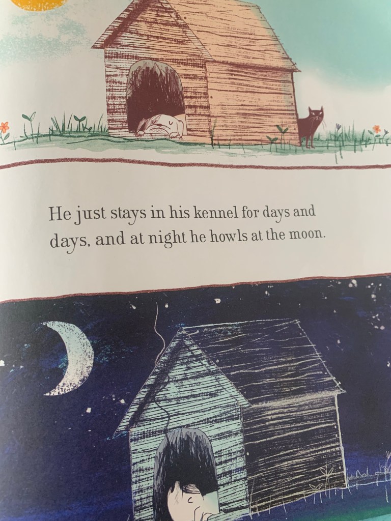 Throughout the book, Biff is told that dogs don’t do ballet- he doesn’t touch his food, he howls at the moon at night, his tail drops and his ears droop, and on stage he turns bright red.