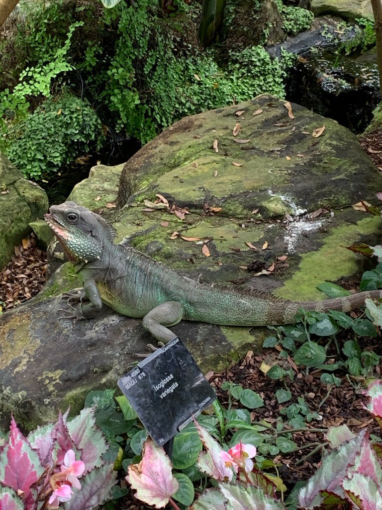 Look at this “beast”! The conservatories were open and had a one way system in place. The iguana said hello, G8 was convinced it was not real but we could see his tummy rise and fall from breathing.
